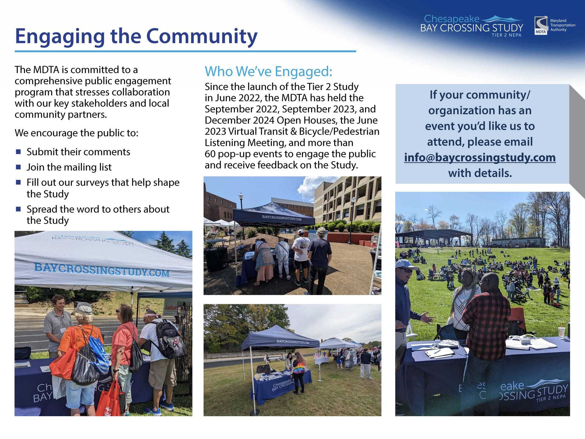 We’re hosting these Open Houses to share and receive input on the Tier 2 Study.